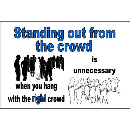 One important lesson is choosing friends wisely. If a young person constantly hangs out with the world, he is constantly faced with the knowledge that he shouldn’t be a real part of the group. But when he spends his time with other Christians, he doesn’t have to look different from the crowd.